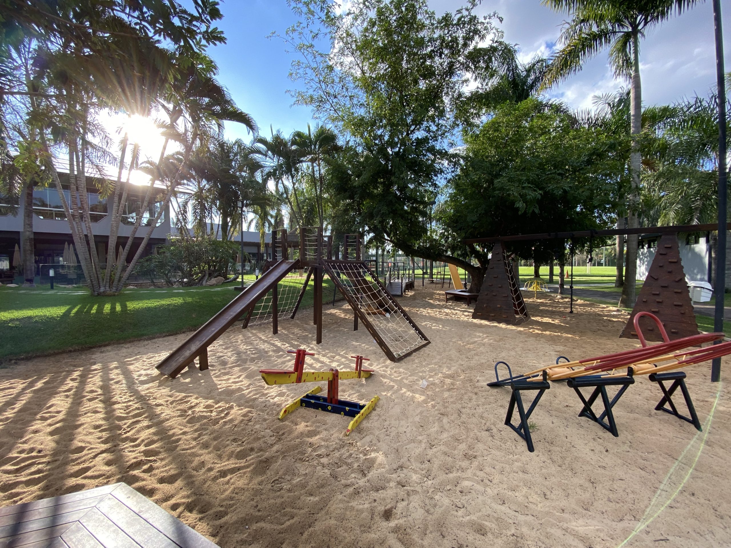 Os condôminos do Mondrian têm à sua disposição uma área de esportes e lazer incrível, com paisagismo exuberante, quiosques com locais para descanso e conversas, salão de eventos mobilhado e climatizado, salão de jogos, quadra de squash, academia, restaurante e brinquedoteca emoldurados por lindos espelhos d’água e cascatas. Além de campos de futebol, quadras de areia, tênis, poliesportiva e um divertido playground com brinquedos lúdicos.